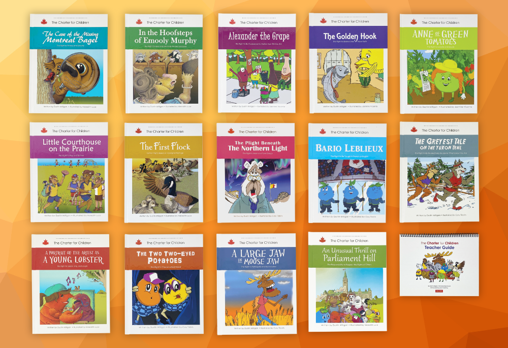 The Charter for Children, written by Dustin Milligan and illustrated by Cory Tibbits, Jasmine Vicente, and Meredith Luce, is a creative and educational 14-picture book series about our rights as Canadians. It explores the Canadian Charter of Rights and Freedoms, which is committed to ensuring everyone can live freely, no matter their situation or identity. These engaging stories are specifically written for children and take place in Canada.