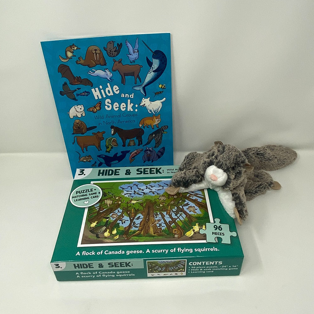 Hide & Seek Book + Flying Squirrel Plush + Squirrel Puzzle