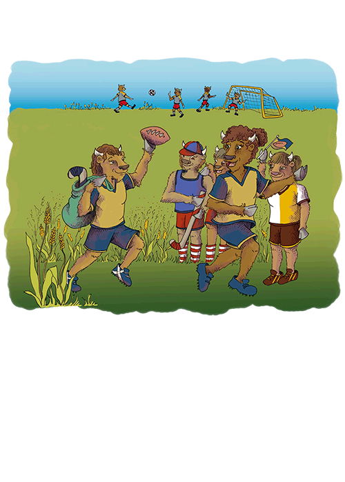 Just outside of Winnipeg, the bison play all kinds of sports on the prairie fields. But one day, Sheriff Buffy decides to take over all the fields so that the bison can only play hoofball! She tells Emma, a young hoofball player, that hoofball players are superior to all the other players. First, Sheriff Buffy goes after the field hockey players and takes over their fields. Emma and the other bison are too scared to speak up. Then Sherriff Buffy goes after the lacrosse players, and then the soccer players. Will Emma or any of the bison muster the courage to speak up before she comes for them?